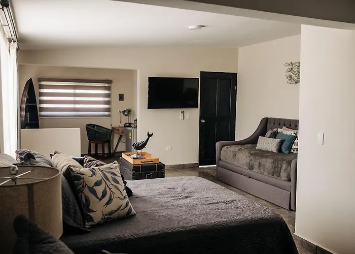 Situated within 25 minutes' walk of Ochre-Colored Church, the 3-star Los Colibris Casitas Todos Santos hotel features Wi-Fi in public areas and a free private car park on site. Boasting a location right next to Playa Todos Santos B.C.S, the hotel offers views of the Pacific Ocean along with a Jacuzzi and an outdoor swimming pool onsite.