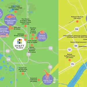 The 3-star Hyatt Place Detroit/Auburn Hills is nestled in the business district of Auburn Hills, around a 10-minute ride from sports attractions, such as Palace of Auburn Hills Arena. The hotel offers Wi-Fi throughout the property, a free private car park on site and an indoor pool.
