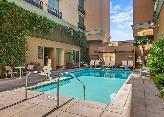 The pet-friendly Hyatt Place Riverside Downtown has an outdoor swimming pool.