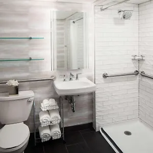 The private bathrooms are appointed with a hairdryer and complimentary toiletries. Some units also have views of the city.