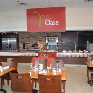 Guests can try dinner, usually served at one of the on-site restaurants, for example at Oase Grille. Drinks are available at the pool bar.