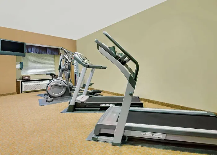 An outdoor pool and a fitness room will help you stay healthy.