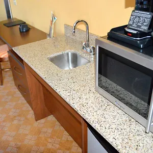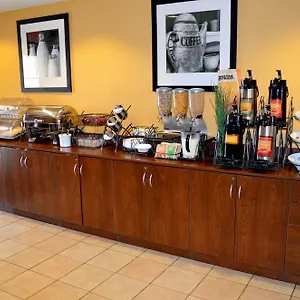 Every day the Microtel Inn And Suites By Wyndham serves a free buffet breakfast, including eggs, fresh coffee and bacon. This accommodation invites guests to the snack bar to relax with a drink.