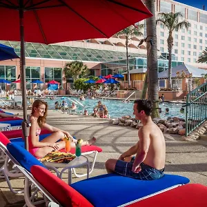 The Moody Gardens Hotel Spa And Convention Center Galveston offers a made-to-order breakfast in the restaurant. You can visit Cafe In The Park restaurant for brunch and eat American dishes. This contemporary property has the swim-up bar with a billiards table and a TV. It features tropical decor furnished with swim-up chairs.