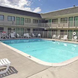 An outdoor swimming pool awaits guests of Motel 6-Twin Falls, Id.