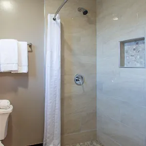 For more comfort, towels together with a bathtub and a roll in shower are provided.