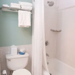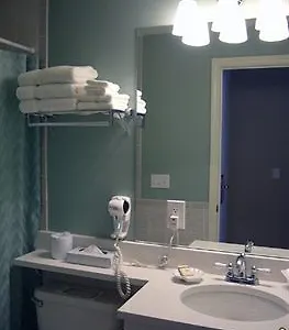 Providing a shower/bath combination, the bathrooms are also appointed with a hair dryer and towels.