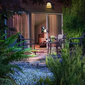 Together with a hot tub, the private bathrooms have hair dryers and towels. Some of the units look out over the garden.
