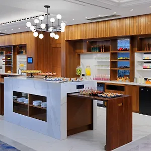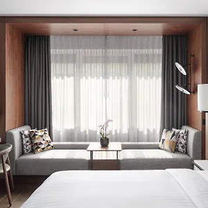 Some of the spacious rooms of the Marriott face the city, and comprise a terrace and a dressing room. Furnished with a writing desk, they also have sound-proofed windows. The elegant private bathrooms come with a hair dryer and bath sheets.