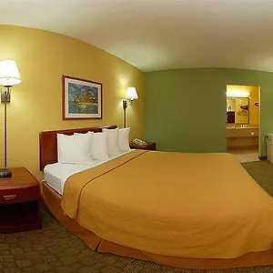 The 2-star Quality Inn & Suites Orlando Airport welcomes guests to 96 non-smoking rooms. Some of them come with a flat-screen TV with satellite channels and Wi-Fi along with a mini-fridge-bar, tea and coffee making equipment. They have comfortable interior. Providing a tub and a shower, some bathrooms come with hair dryers and bath sheets.