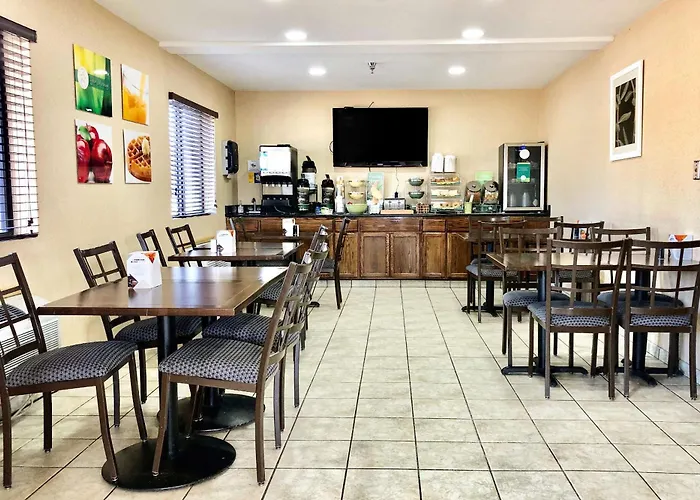 A free buffet breakfast is offered to the guests of the hotel. The restaurant Arby's is a 5-minute walk away.