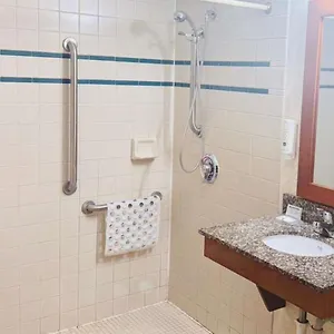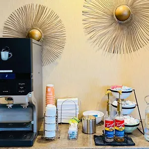 The hotel offers a free buffet breakfast. You can enjoy an American cuisine in the Arby's located a mere 200 metres away.
