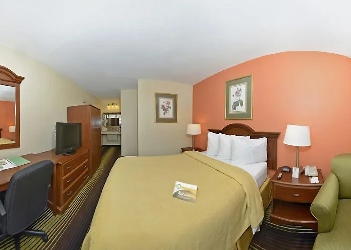 Located 3.1 km from Bethabara Park, the 2-star Quality Inn University Winston Salem offers spacious rooms 15 minutes by car from Lawrence Joel Veterans Memorial Coliseum Arena. Featuring a quiet location, this pet friendly inn includes an outdoor swimming pool and a gym facility, plus guests can visit SciWorks Science Museum, which is approximately an 18-minute stroll away.