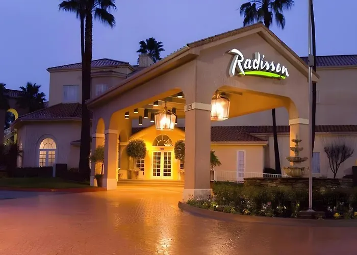 Set nearly a 10-minute drive from Carmel Mountain Plaza, the 4-star Radisson Hotel San Diego Rancho Bernardo features high-speed Internet access throughout the property as well as parking on site. Boasting an outdoor swimming pool, this modern hotel is nestled within 2.6 km of natural attractions like the 6-acre neighborhood Patriot Park.