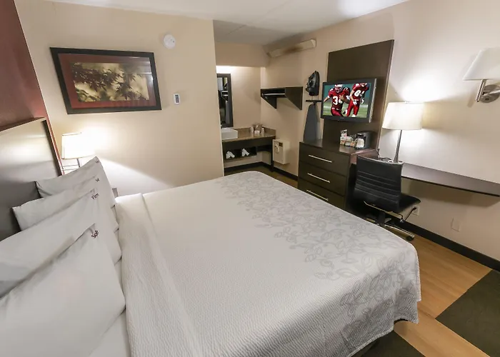 Set a 10-minute ride from Italian Village, the pet-friendly Red Roof Inn Plus+ Columbus-Ohio State University Osu also gives access to such sports venues as the multipurpose Nationwide Arena, which is about 6 km away. The American Ohio Football Stadium is 5 minutes' drive from this family-friendly inn, and John Glenn Columbus International airport is 20 km away.