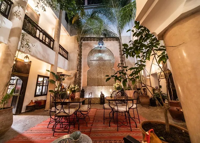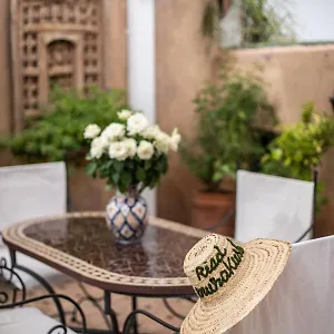 The 2-star Riad Mur Akush Marrakesh is located within 15 minutes' walk of Medina of Marrakesh and offers a luggage room and a restaurant. The riad also includes a rooftop terrace with a table and chairs.