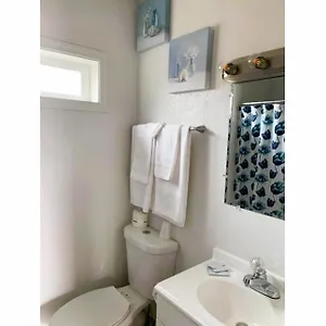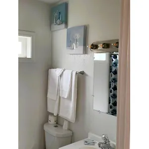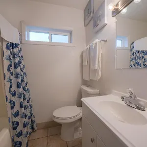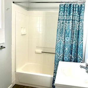 The rooms have private bathrooms with a tub and a shower. Guests can also use a bathtub and a shower, along with such amenities as toiletries.