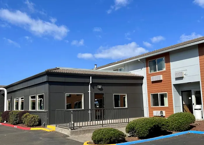 Some of the 89 air-conditioned rooms at this Tillamook hotel are furnished with a work desk, and appointed with coffee and tea making equipment. For more comfort, hairdryers together with a hot tub and a sauna are provided.