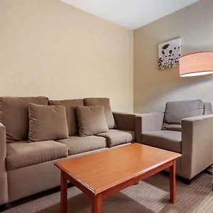 Some of the 55 air-conditioned rooms at Sleep Inn & Suites Hays I-70 are furnished with a sofa and a work desk, and appointed with a mini fridge bar and a coffee machine. Guests can also use a Jacuzzi bath and a separate toilet, along with such amenities as a hairdryer.