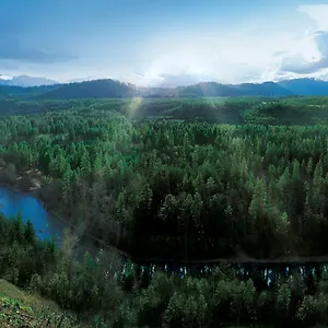 There are 122 air-conditioned rooms at the hotel, some of them feature a stone fireplace, along with such conveniences as cable channels. A hot tub and a sauna, together with such amenities as a hair dryer and complimentary toiletries, are also at guests' disposal. Certain units overlook the river.