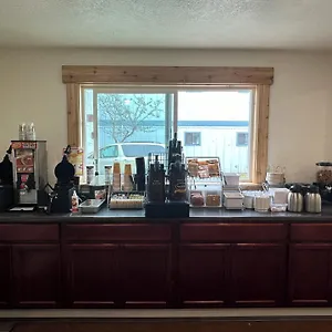 There is a light continental breakfast served at the hotel. The pizzeria Round Table Pizza is located 250 metres away.