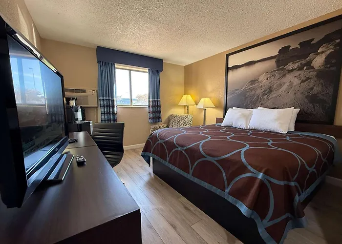 The perfect 2-star Super 8 By Wyndham Hutchinson Hotel, located 2.6 km from Cosmosphere Museum, offers an outdoor swimming pool and WiFi throughout the property. Along with the use of a sports complex on site, sports fans are invited to discover Hutchinson Sports Arena, which is about a 25-minute stroll away.