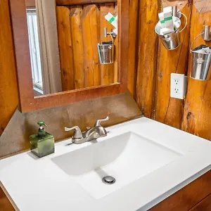 Certain rooms have a stone fireplace along with a sofa set for guests' convenience. Some units also feature a microwave, a coffee maker, and a refrigerator. The private bathrooms are fitted with a hair dryer and guest toiletries.