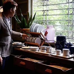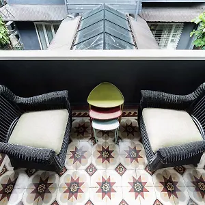 Some of the 33 air-conditioned rooms as this Manila property face the garden and comprise a private balcony and a sitting area. They are appointed with a writing table, and also feature a mini fridge bar. The private bathrooms feature a hair dryer and slippers.