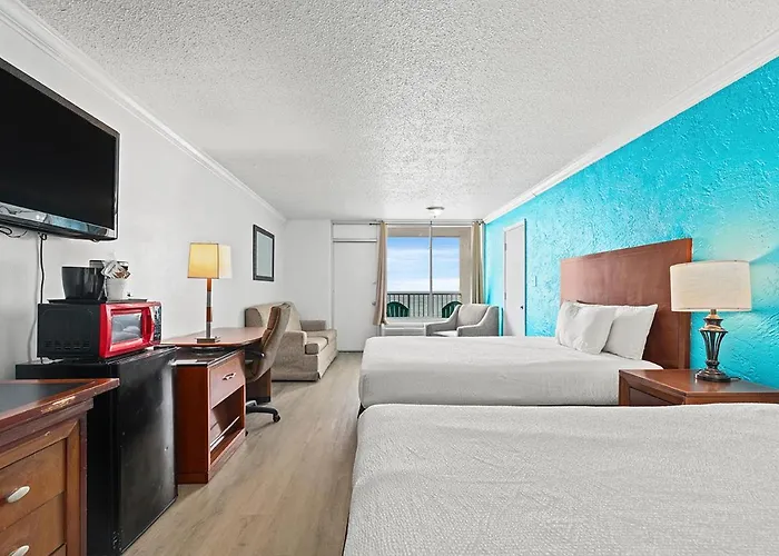 Some rooms provide a coffeemaker as well as cable channels to help you enjoy your stay. Moreover, they include a microwave and a refrigerator. Certain units feature views of the sea.