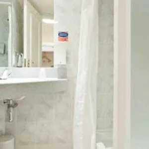 The private bathrooms are appointed with hairdryers.