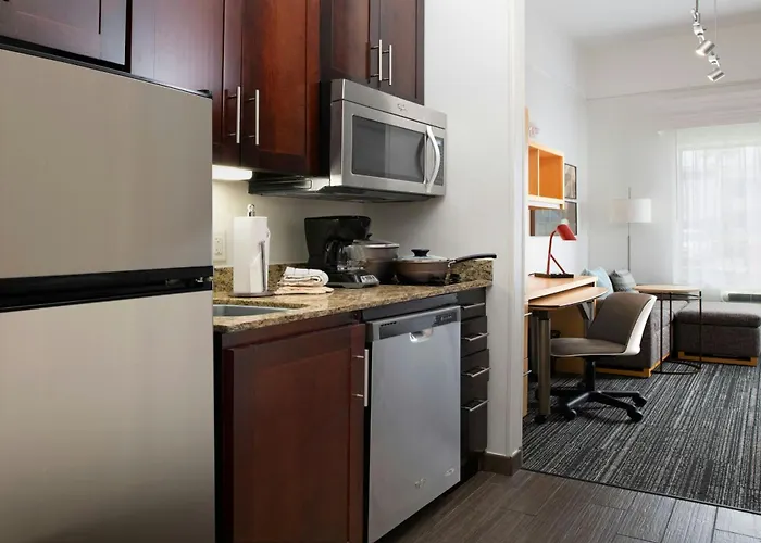 Such facilities as a sunbathing terrace and a community pool are available for a surcharge. At the Towneplace Suites By Marriott, guests can also benefit from fitness classes provided at a fitness area. Business travellers are welcome to use a business centre offered on site.
