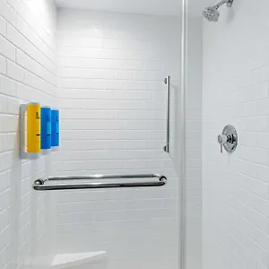 The private bathrooms include a roll in shower, and comforts such as guest toiletries.