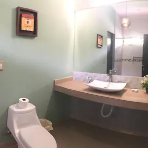 The 6 rooms at this Cancun hotel comprise an adjoining terrace and a balcony. A separate toilet and a shower, along with a hairdryer and bath sheets, are provided.