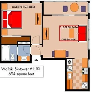Waikiki Skytower #1103 Bed & Breakfast Honolulu is about 8 minutes on foot from Waikiki Beach Walk and features a cash machine and a lift onsite. Boasting a swimming pool, this Honolulu bed & breakfast is nestled not too far from natural attractions like the calm - water Kuhio Beach Park.