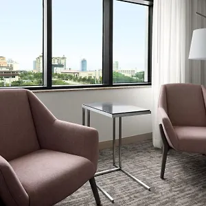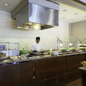 The Marriott offers on-site breakfast in the restaurant. You can go to Bistro Ten Zero One restaurant for breakfast or eat your lunch at Starbucks restaurant. There is a restaurant serving American food about a 7-minute stroll away.