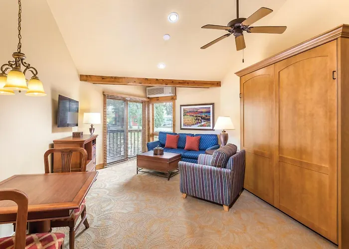 There are 55 quiet rooms at the Worldmark Galena, some of them feature a fireplace, along with such conveniences as complimentary WiFi and a TV set. A spa bath and a sauna, together with such comforts as a hair dryer are also provided. Guests can enjoy views of the countryside. Additionally, self-catering facilities in an apartment include a kitchen with a microwave, coffee/tea makers and fridges.