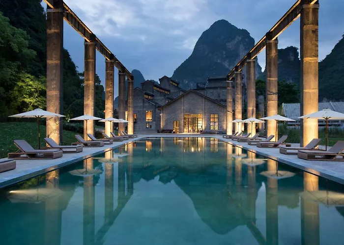The comfortable Yangshuo Sugar House Hotel is a 20-minute walk from Impressions of Liu San Jie and has a seasonal outdoor swimming pool and a fitness suite. This 5-star luxury hotel lies in the heart of Yangshuo and welcomes guests with a treatment room and an outdoor swimming pool.